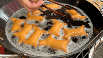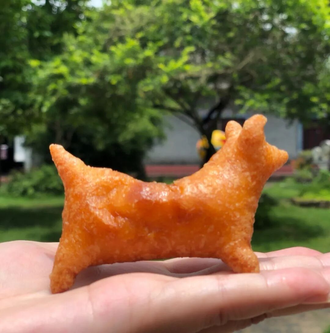 “哞咩”使用靖西本地的大糯经过打磨、筛选、搓面、捏造、油炸五个全手工制作的步骤才捏制而成。