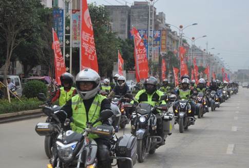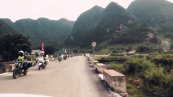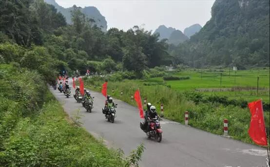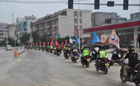 在自治区旅游发展委员会纪检组长黄中贤的“出发”号令下,机车长龙伴着咆哮的引擎声依次出发,从山水驿路的起点开始绕行县城一圈后向旧州进发。机车队伍浩浩荡荡,穿梭在市区、山中,潇洒霸气的背影震慑路边经过的人,纷纷侧目。