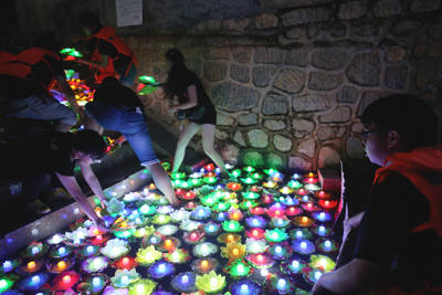 放鸽子放飞机这样的事隔三差五便有,放河灯倒是没试过。在空气中弥漫着暧昧与浪漫的龙潭,湖面流光溢彩,如梦似幻,一盏莲花灯,载有一个美好愿景,带上善男信女们的嘱咐,朝更远处飘去。
