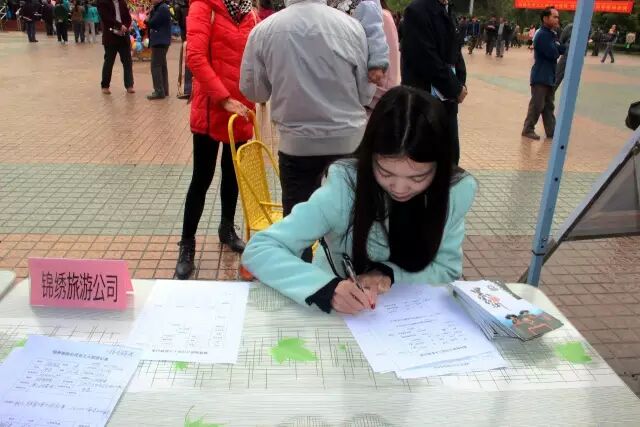3月30日由靖西市旅游发展委员会组织的春季旅游扶贫就业招聘会在靖西市中心广场进行,锦绣旅游开发有限公司参与了此次招聘会。招聘会得到了市民的热烈响应,市民积极询问招聘职位的情况,有合适的职位都积极报名参与,路过看到招聘的家长也帮助儿女询问岗位招聘的情况。锦绣旅游公司在此次招聘会上收获颇丰,现场收到很多优秀的简历,为进一步壮大公司的人才队伍奠定了基础。